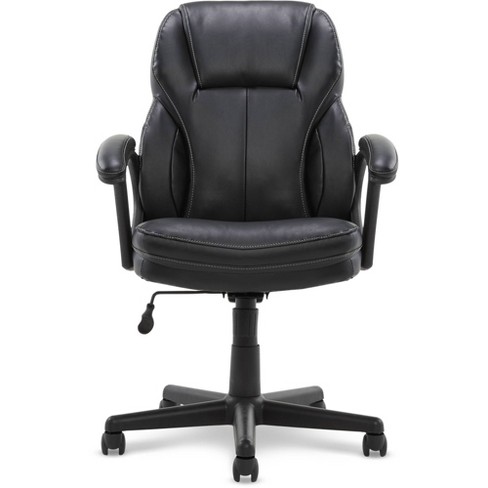 Upholstered in black puresoft faux leather this high back executive office chair is smooth to the touch and elegant in appearance.